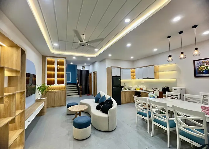 Cette propriété en front de mer est équipée d'équipements indépendants, notamment d'une cuisine équipée et d'un coin repas extérieur pour le plaisir des clients. Il y a aussi une bouilloire électrique, un réfrigérateur et de la vaisselle disponibles dans la cuisine. L'aéroport Aeroport de Lien Khuong le plus proche est à 160 km de cette villa en front de mer de 3 salles de bains.